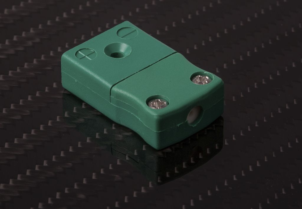 Thermocouple connectors are an accurate and convenient way of interconnecting your temperature sensing components. Using these connectors allows a chain to be formed from the measuring tip of your temperature sensor to the host computer or meter. It is important that all the components in the chain are made from the same thermocouple material to prevent any alteration or distortion of the original signal. To achieve this, thermocouple connectors have pins made from the same material as the thermocouple they are being used to connect or a compensating material. The connector housing has the thermocouple type clearly printed on it and is also colour coded to allow easy identification. The connector is opened up and the thermocouple wires are simply screwed down into place using two captive screw clamps. The miniature thermocouple socket connector can then be mated with a miniature thermocouple plug connector.