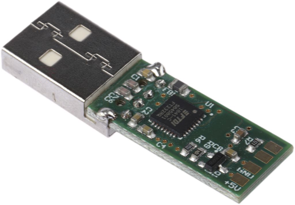 These USB to RS-232 / RS-422 / RS-485 converters provide a fast and simple method to convert serial UART to USB. The USB connector contains a small circuit board featuring the FTDI FT232RQ (RS 730-0168) serial UART interface IC to handle all the USB signalling and protocols. There are two LEDs to indicate data being received and transmitted.