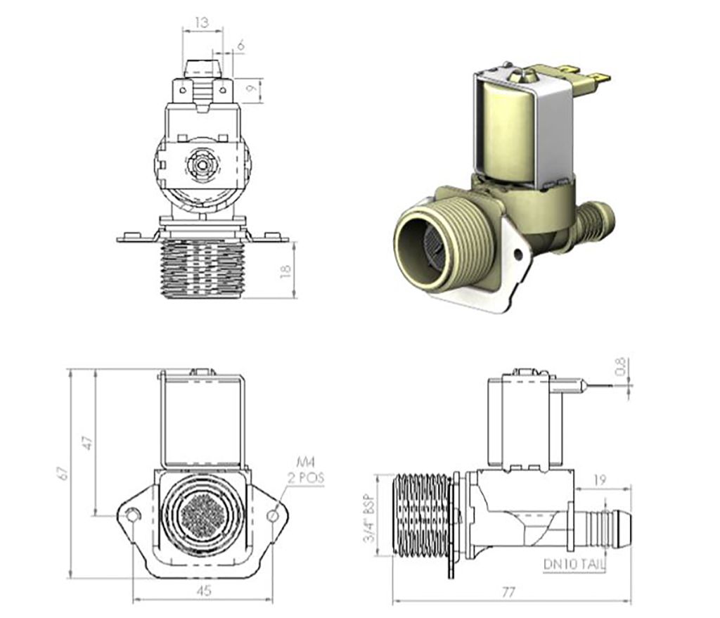 | Product description | RS PRO Solenoid Valve, 2 port(s) , NC, 230 V ac/dc, 3/4in |