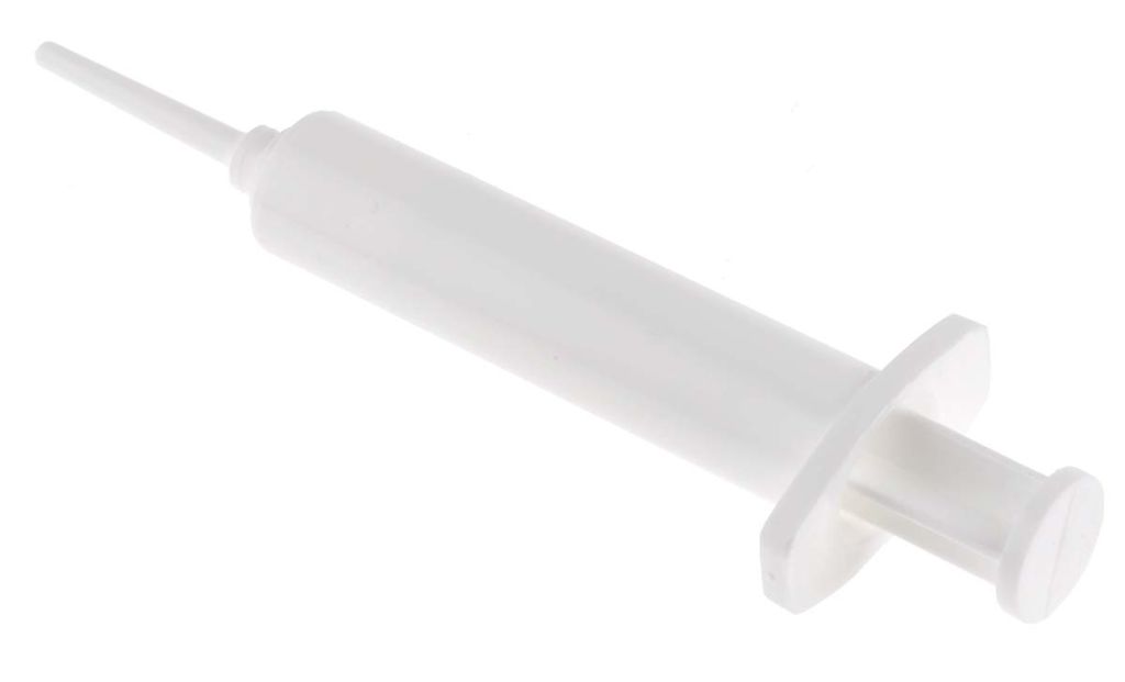 Introducing the range of excellent-quality syringes from RS PRO. These syringes are made of durable, white plastic and have been designed to meet high customers' expectations. A plastic plunger ensures smooth and precise applications of oils, greases, adhesives, contact cleaners/lubricants etc.. Syringes are supplied with a protective cap.