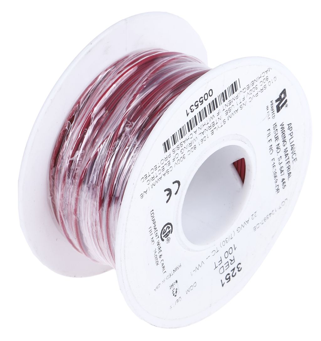 | Product description | Alpha Wire Red 0.33 mm² Hook Up Wire, Premium Series, 22 AWG, 7/0.25 mm, 30m |