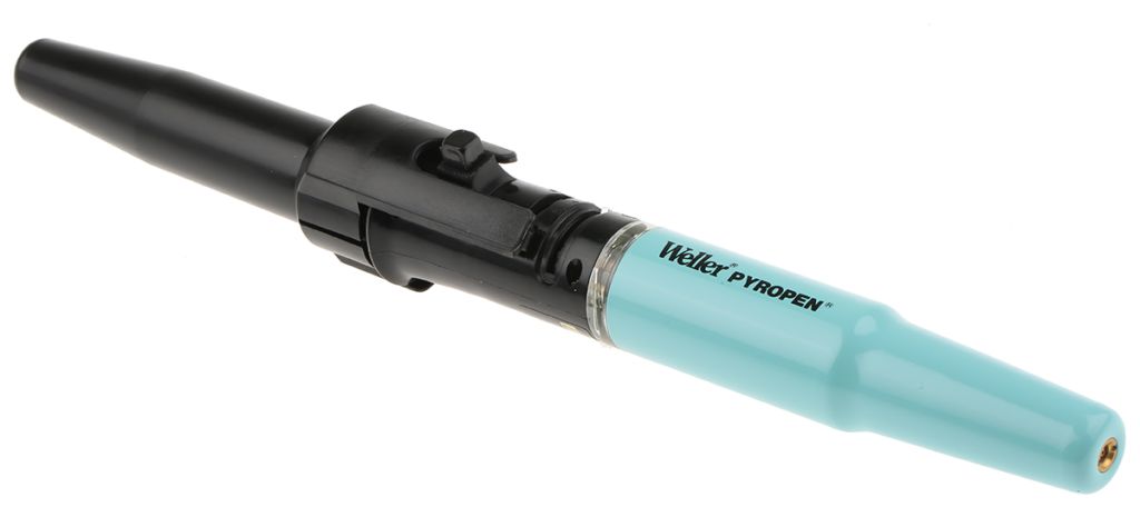 From Weller this is the WSTA4 Pyropen, a refillable gas-powered soldering iron a unique professional, cordless, versatile piece of soldering equipment plus can be used as a hot air soldering iron. Excellent for use when working in the field as this soldering iron is a lightweight, compact soldering iron and ready to use within 30 seconds. The WSTA4 Pyropen fills with butane gas and we recommend using only the Weller PGR1 butane gas refill, stock number 2161668. When closed the Pyropen soldering iron looks like a standard pen, the top protects the solder tip when not in use and the base of the pen holds the reservoir of butane gas. You do not need to an external ignition source to ignite the soldering iron as it features the Piezo igniter. Replacement hot air soldering nozzles and solder tips are available and the Pyropen is a great addition to any soldering kit.